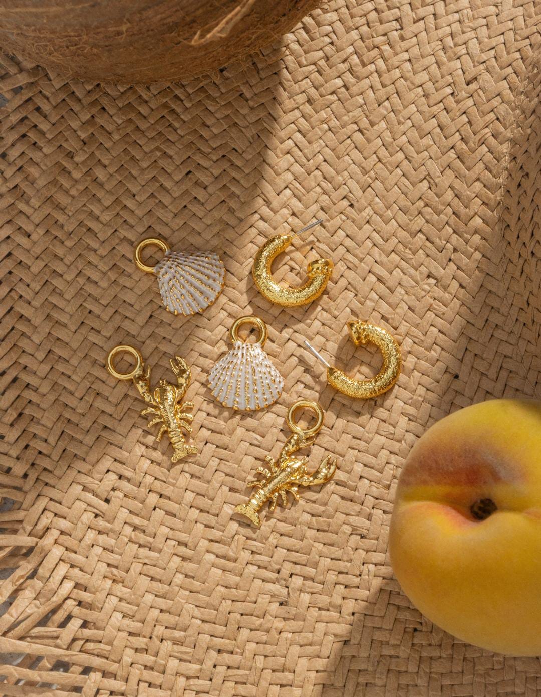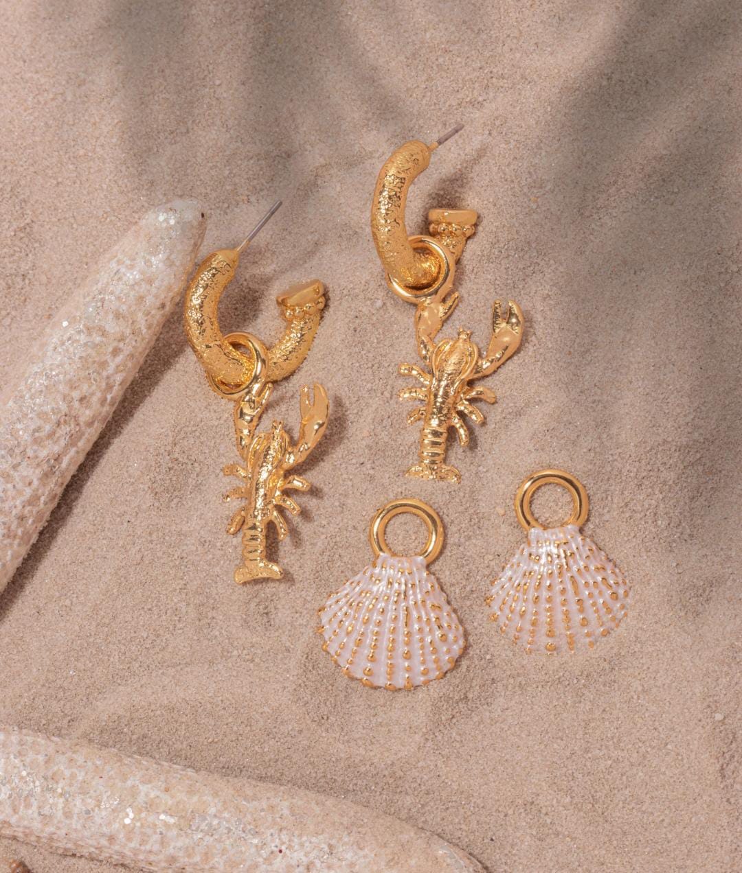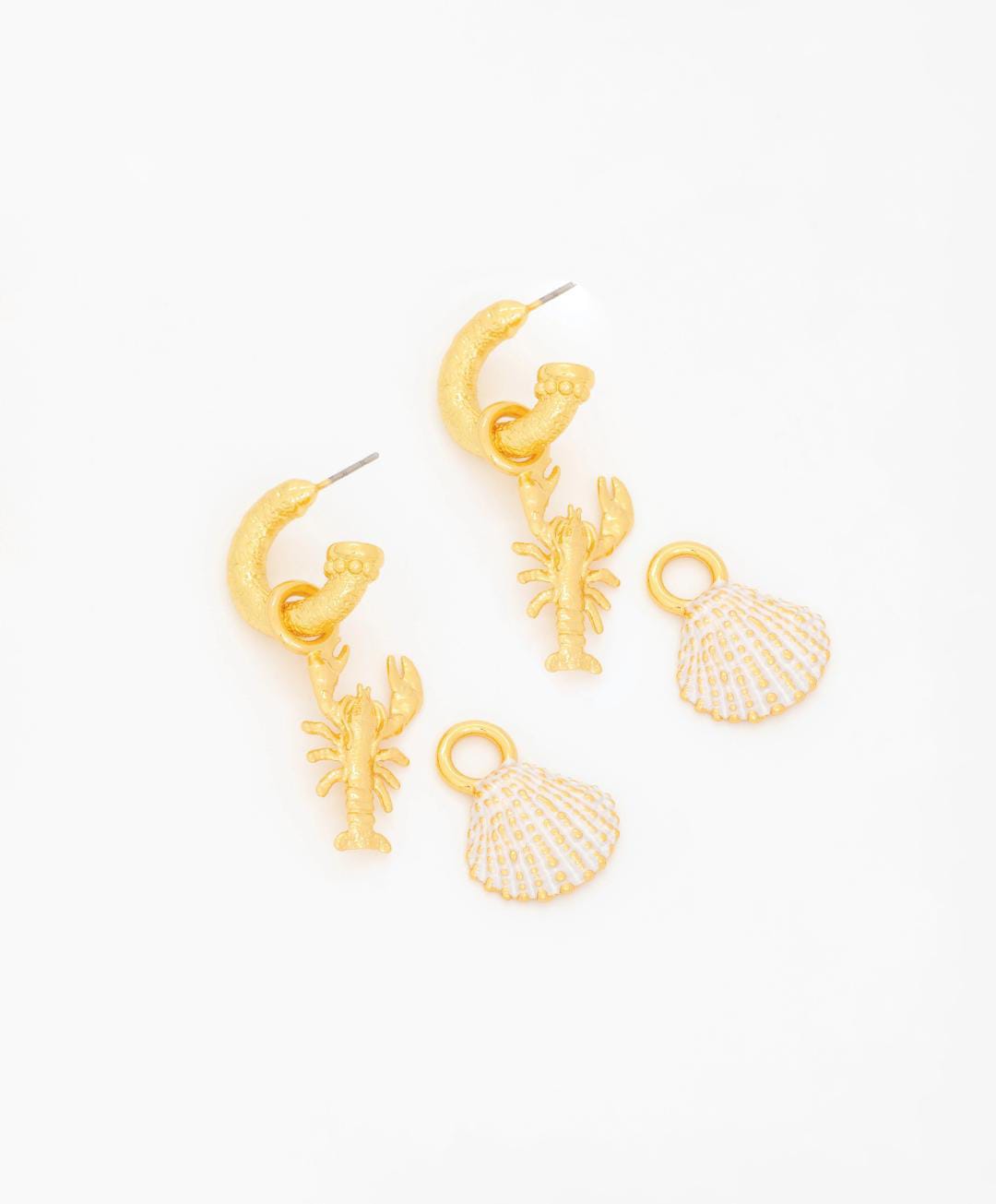 - Incluye: 1 Par de Candongas, 1 par de dijes de concha y 1 par de dijes de langosta.