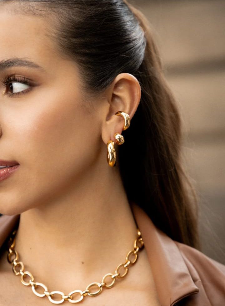 - Incluye: 1 par de candongas, 1 par de topos y 1 earcuff.