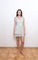 Su escote en “V” tanto en el frente como en la espalda estiliza la figura, mientras que los lazos ajustables en los hombros permiten personalizar el ajuste. La falda con volumen y detalles bordados aporta movimiento y un toque romántico.